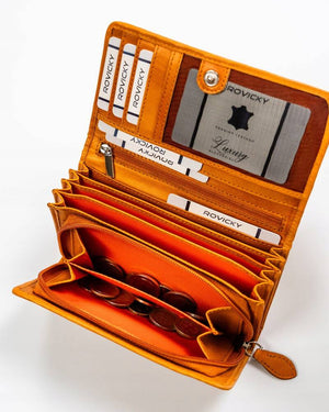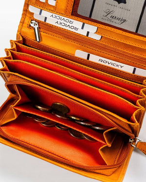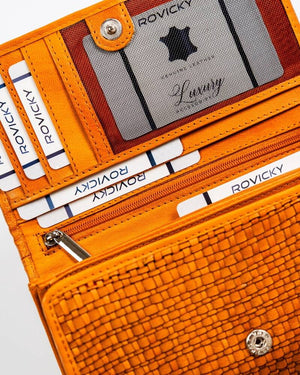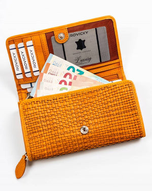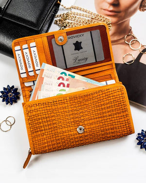 Ši elegantiška ir praktiška moteriška piniginė iš Rovicky yra pagaminta iš aukštos kokybės natūralios odos. Geltonos spalvos dizainas suteikia išskirtinumo ir stiliaus. Piniginė yra didelio dydžio, todėl puikiai tinka kasdieniam naudojimui. Nors ji neturi RFID apsaugos, piniginė siūlo pakankamai vietos jūsų kortelėms, turėdama 1-5 kortelių skyrius. Jos kompaktiški išmatavimai leidžia lengvai tilpti į rankinę ar kuprinę.