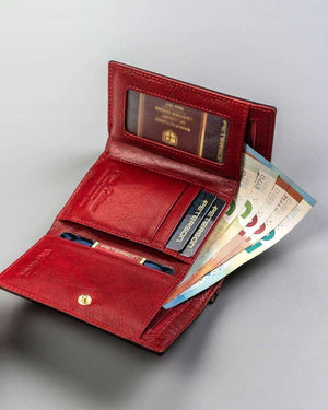 Kortelių ir dokumentų skyriai tvirtinami logotipo pamušalu . Taip išvengiama odos įbrėžimų įdedant ir išimant korteles.
