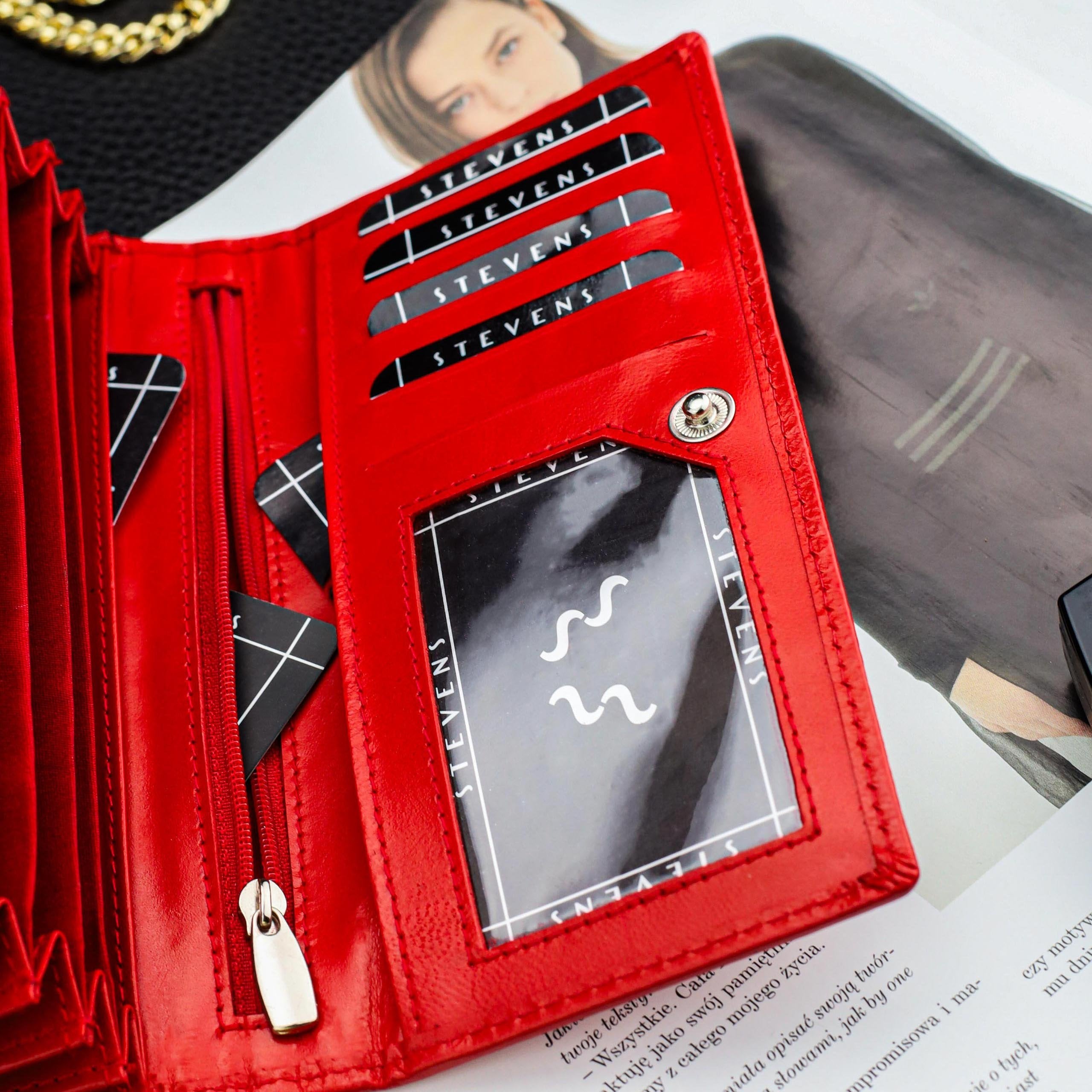 Moteriška odinė piniginė STEVENS Extended Z02-063M raudona su RFID apsauga D1885