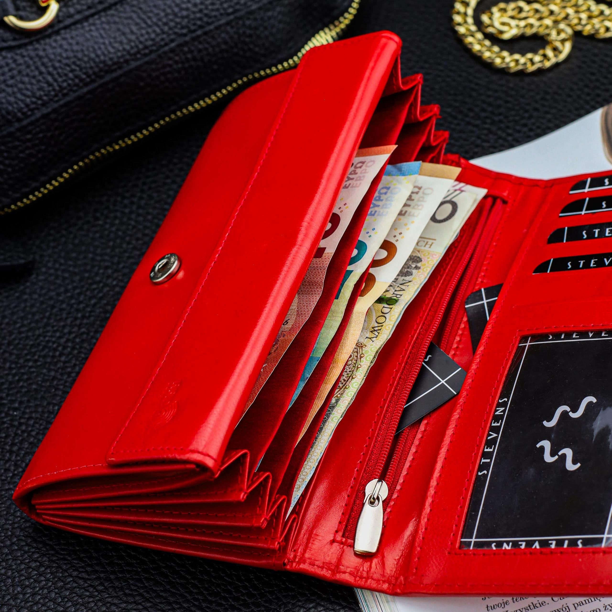 Moteriška odinė piniginė STEVENS Extended Z02-063M raudona su RFID apsauga