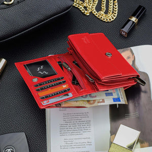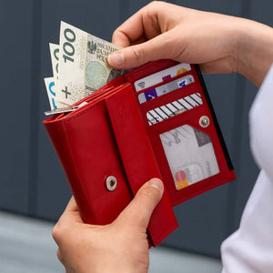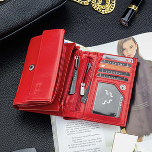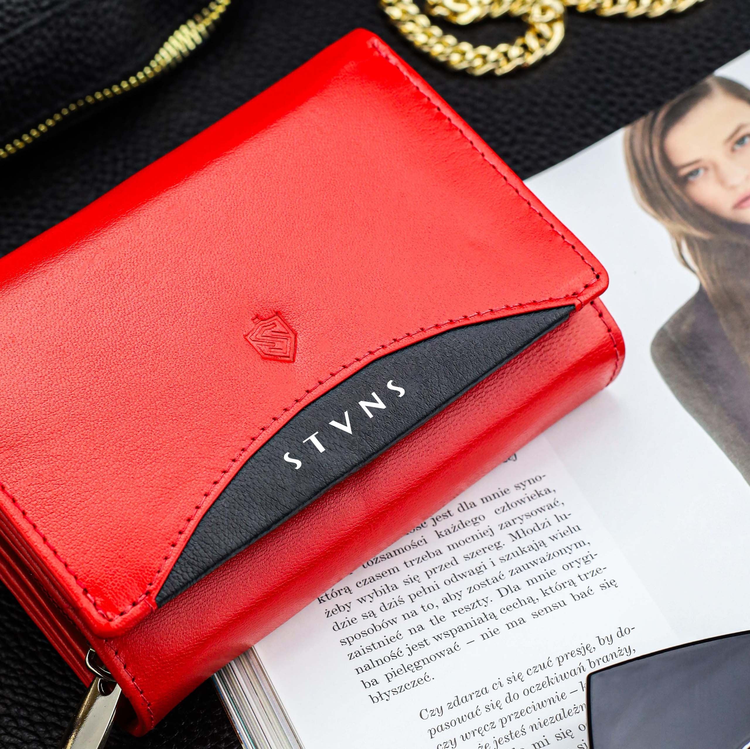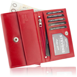 Moteriška odinė piniginė STEVENS su RFID Z02 / RB raudonos spalvos
