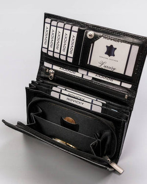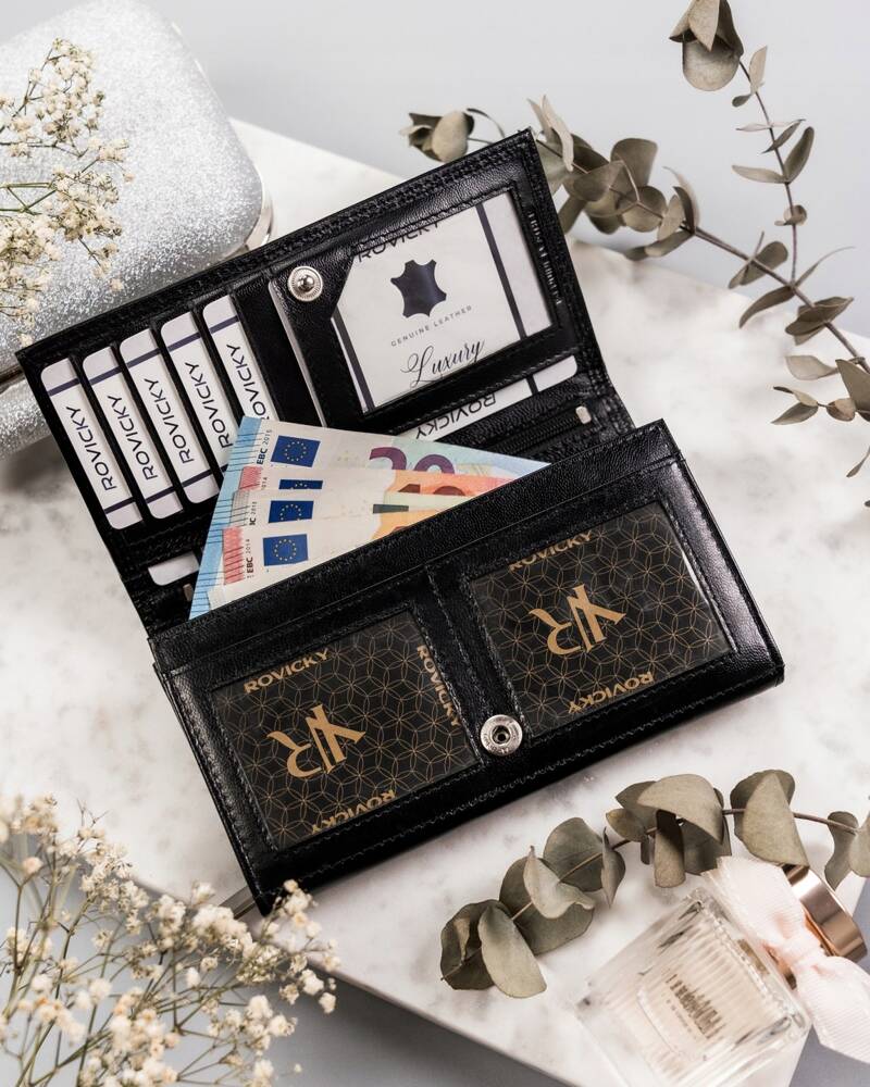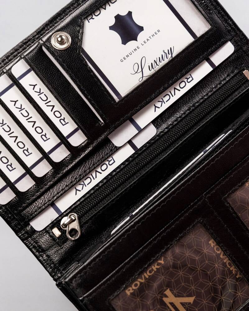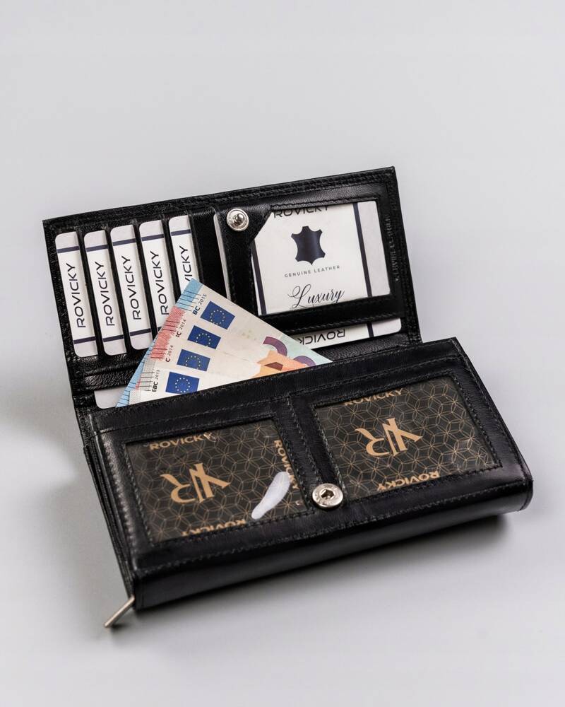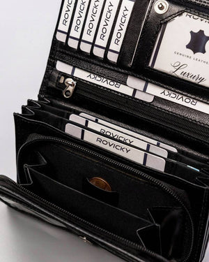 Ši elegantiška ir funkcionali moterų piniginė iš Rovicky yra pagaminta iš aukštos kokybės natūralios odos. Juoda spalva suteikia klasikinį ir universalų stilių, tinkantį bet kokiai progai. Didelis dydis užtikrina, kad turėsite pakankamai vietos visiems savo kortelėms ir gryniesiems pinigams. Be to, piniginė yra aprūpinta RFID apsauga, kuri padeda apsaugoti jūsų asmeninius duomenis nuo neteisėto nuskaitymo. Su daugiau nei 10 kortelių skyrių, ši piniginė yra puikus pasirinkimas tiems, kurie vertina praktiškumą ir saugumą.