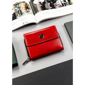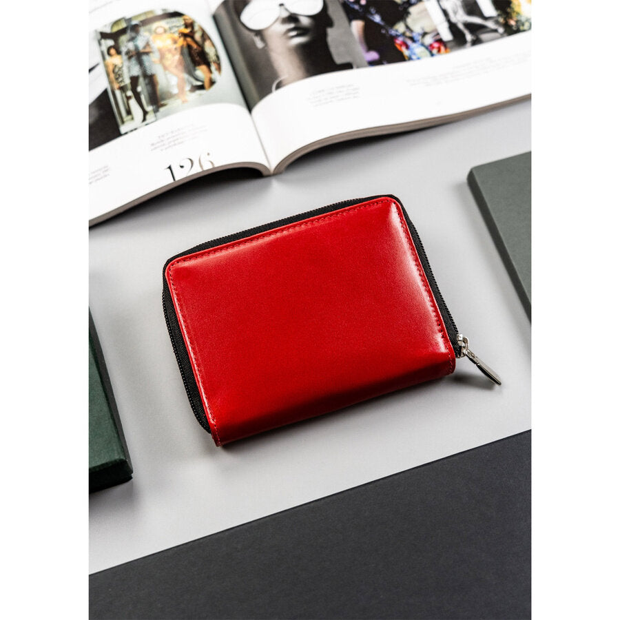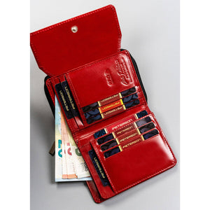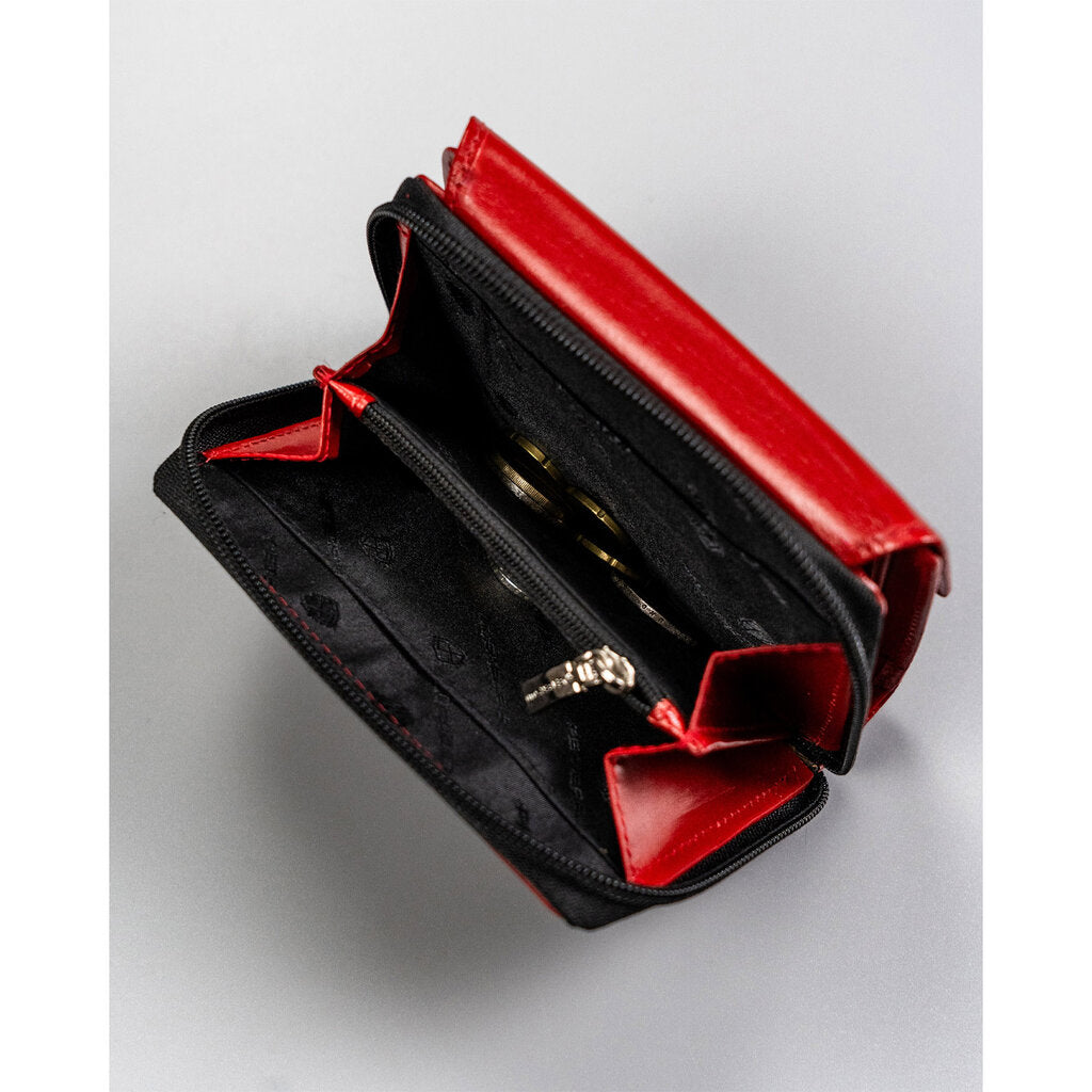 Raudona moteriška odinė piniginė su didele skyriumi monetoms - Peterson D4