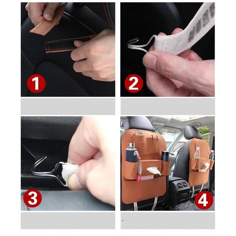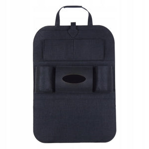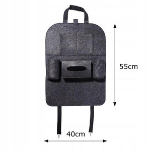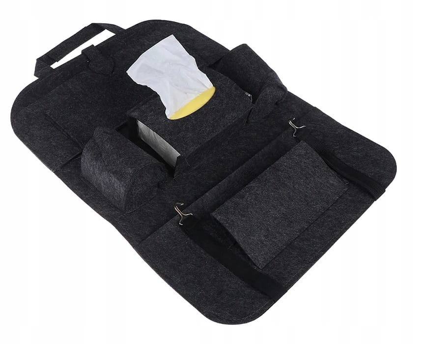 Puikus sprendimas ilgesnėms kelionėms automobiliu, taip pat trumpesnėms išvykoms su vaikais ar keleiviais. Organizatorius pagamintas iš storo veltinio, malonus liesti ir atsparus nešvarumams - be to, jį galima plauti rankomis. Turi daug kišenių ir skyrelių, pvz., servetėlėms, telefonui ar planšetiniam kompiuteriui, žaislams ir gėrimams.