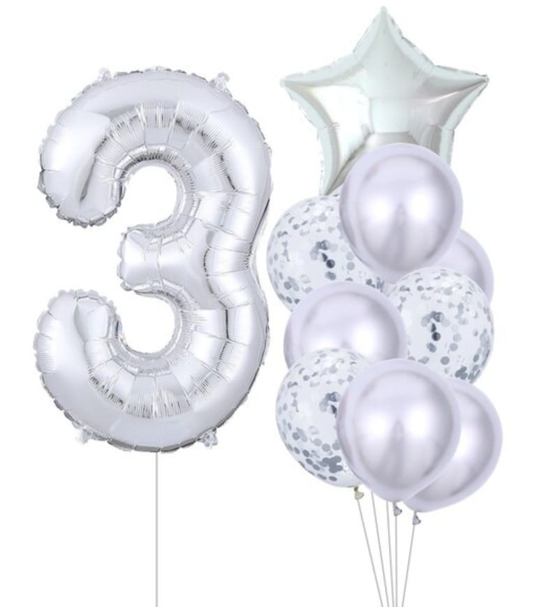 10 sidabrinių balionų rinkinys