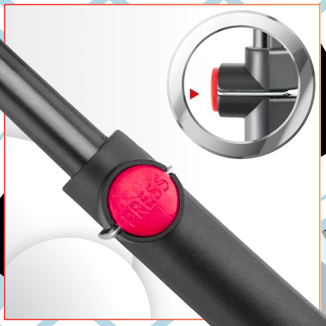 Stipri reguliuojama dviračio atrama, tinkanti 24, 26 ir 28 colių ratams. Pagaminta iš aliuminio. Ilgis: 35–40 cm. Svoris: 340 g. Spalva: juoda. Centrinis tvirtinimas – už atramos. Aukštis reguliuojamas mygtuku. Neslystanti galinė dalis su protektoriumi.