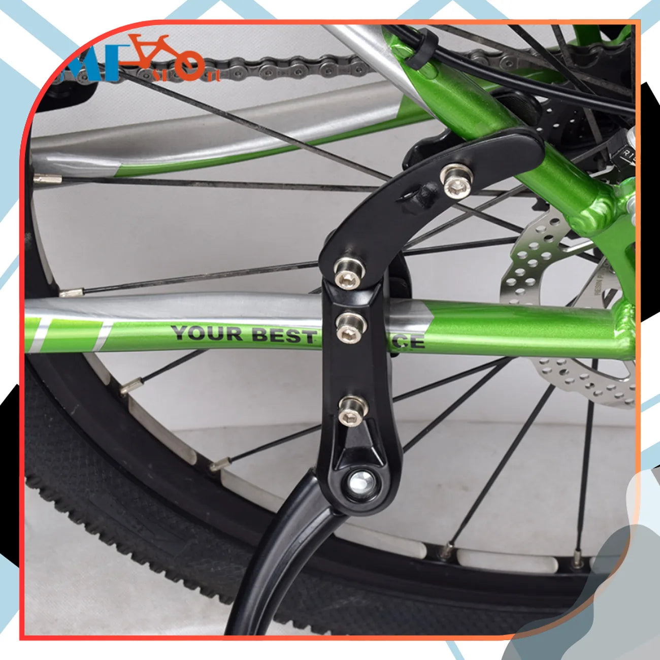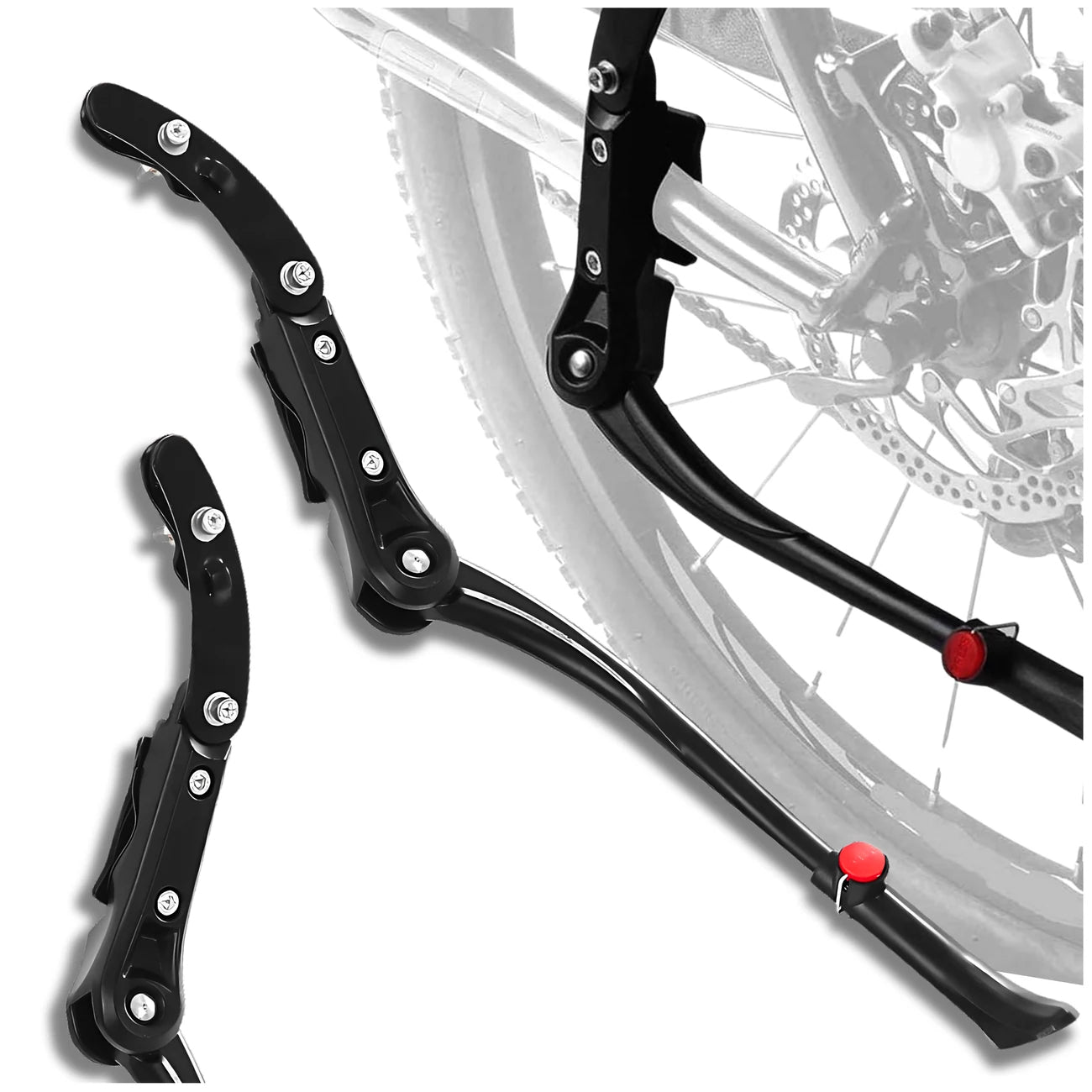 Stipri, reguliuojama dviračio atrama 24-29 colių. Spalva: juoda. Medžiaga: aliuminis. Montavimas: ant galinės rėmo vamzdžio. Maksimalus apkrovimas: 20 kg. Neslystanti galinė dalis. Apsauginė tarpinė kontakto vietoje su rėmu. Svoris: 415 g. Suderinama su dviračiais: MTB, CROSS, CITY.