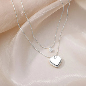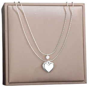 Elegantiška dviguba sidabrinė grandinėlė su širdimi ir cirkoniu