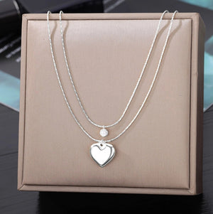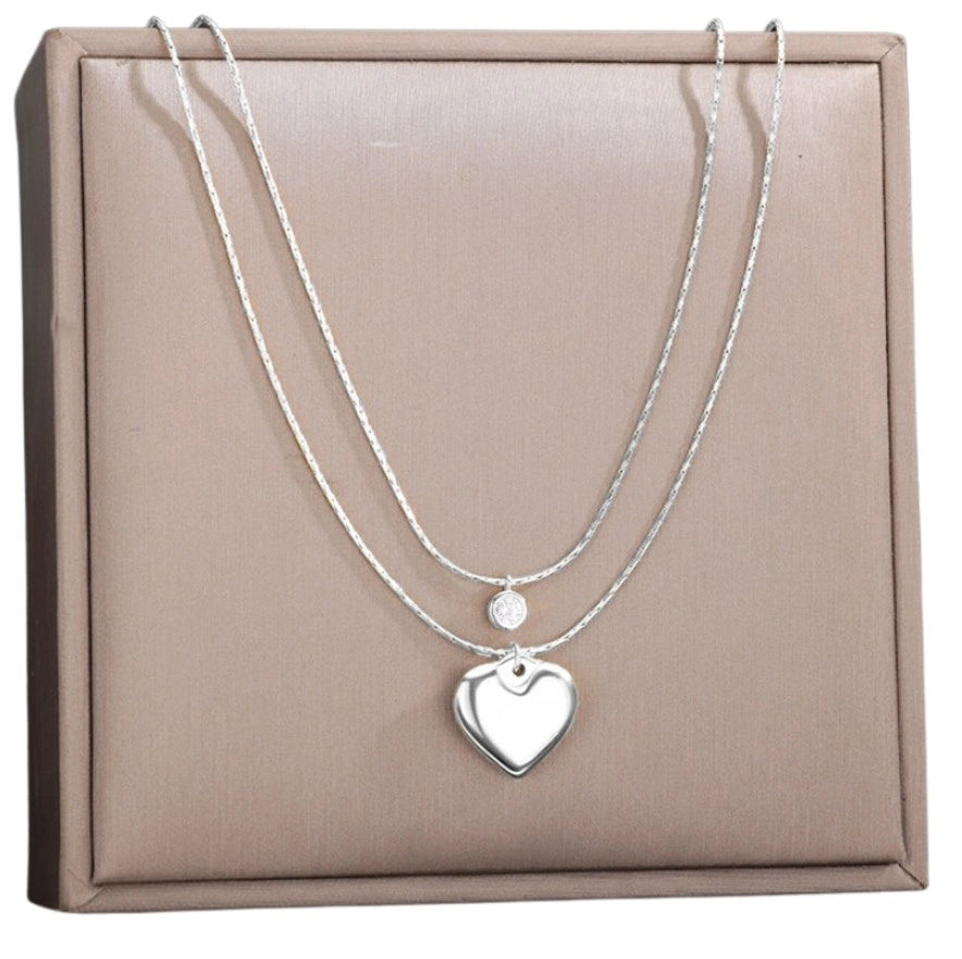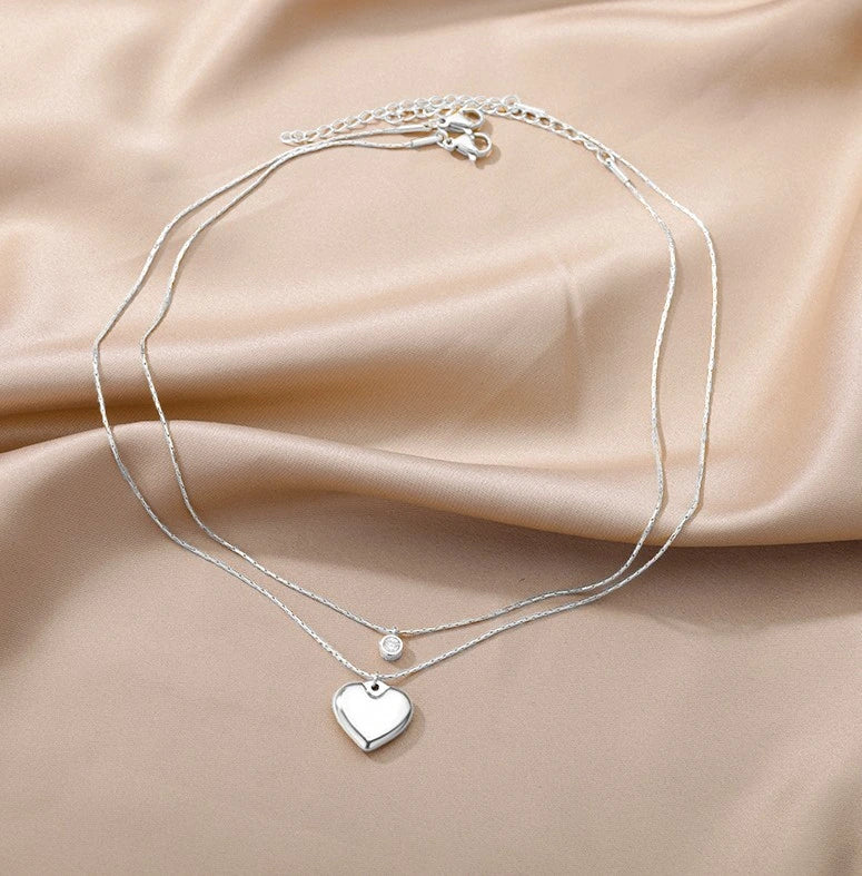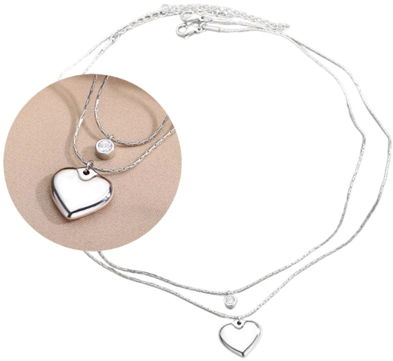 Elegantiška grandinėlė pagaminta iš chirurginio plieno 316L, kuris yra antialerginis ir atsparus korozijai. Ši dviguba grandinėlė turi širdies formos pakabuką ir cirkonį. Puikiai tinka tiek elegantiškoms, tiek kasdienėms aprangoms.