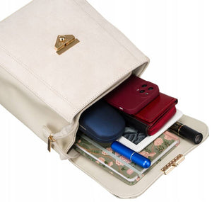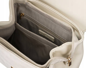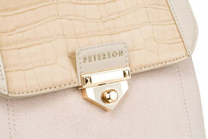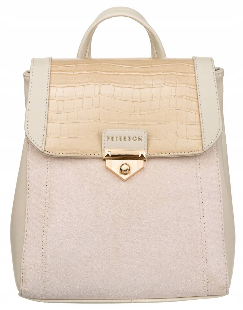 Peterson moteriškas maža kuprinė iš dirbtinės odos, smėlio spalvos, su dviem skyriais ir trimis kišenėmis.