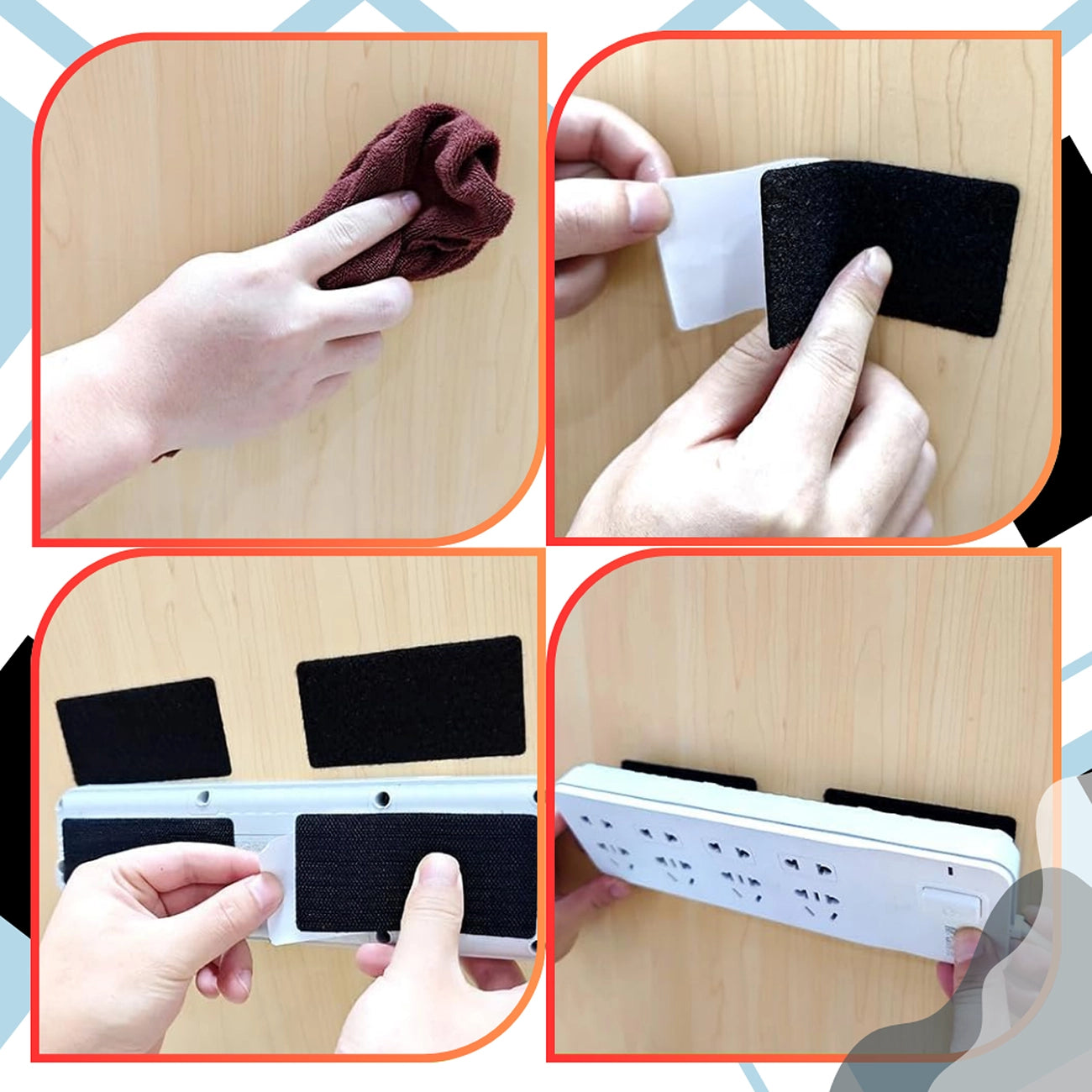 - Klijai ir naudojimas: Stiprūs klijai užtikrina sukibimą su įvairiais paviršiais (plastikas, stiklas, metalas, mediena, audiniai); nereikia gręžti ar naudoti įrankių.