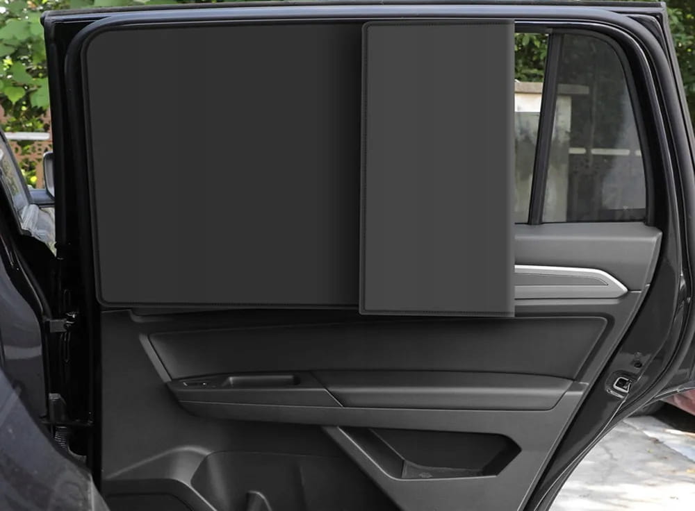 Užtikrinkite komfortą ir privatumą vairuojant su mūsų moderniomis saulės uždangomis. Pagamintos iš aukštos kokybės juodos medžiagos, šios uždangos puikiai apsaugo automobilio vidų nuo intensyvios saulės šviesos ir užtikrina privatumą. Dėl stiprių magnetų uždangos lengvai montuojamos ir neslysta, net važiuojant su atidarytais langais.