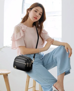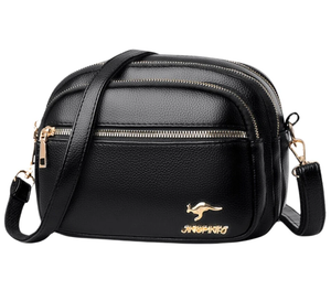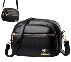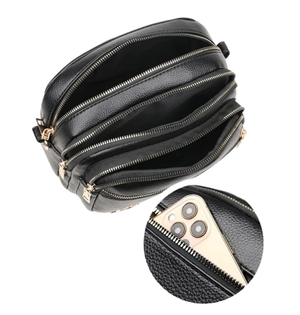 Moteriška odinė rankinė – talpi, auksinės spalvos detalės, reguliuojamas dirželis