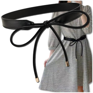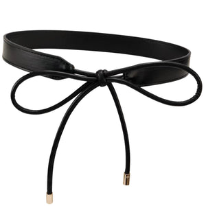 Stilingas juodas diržas, pagamintas iš aukštos kokybės ekologiškos odos, puikiai tinka moterims, norinčioms suteikti savo aprangai elegancijos ir išskirtinumo. Diržas pasižymi dekoratyviniu kaspinu ir subtiliais auksiniais galais, suteikiančiais prabangos. Pagrindinė diržo dalis yra 3 cm pločio ir 69 cm ilgio, o du ploni dirželiai po 56 cm leidžia laisvai reguliuoti ir rišti. Bendras diržo ilgis yra apie 180 cm. Juodas diržas puikiai dera tiek su kasdieniais, tiek su vakariniais drabužiais.