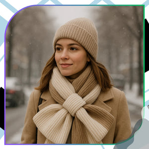 Moteriškas šiltas dviejų spalvų šalikas, smėlio