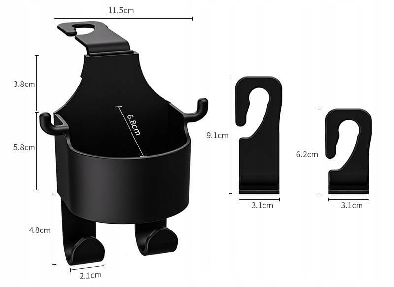 • Stilingas ir saugus: Laikiklis sukurtas atsižvelgiant į interjero estetiką, su sustiprintais kabliukais, kurie yra tvirti, bet nepažeis jūsų sėdynės.