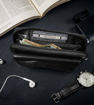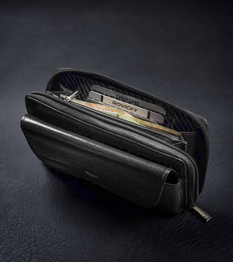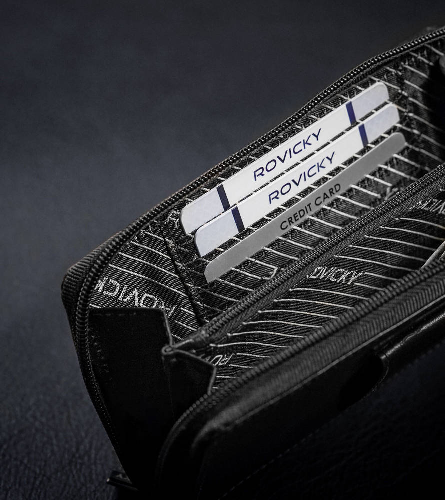 Rovicky delninė vyrams iš natūralios odos, juodos spalvos, su RFID apsauga.