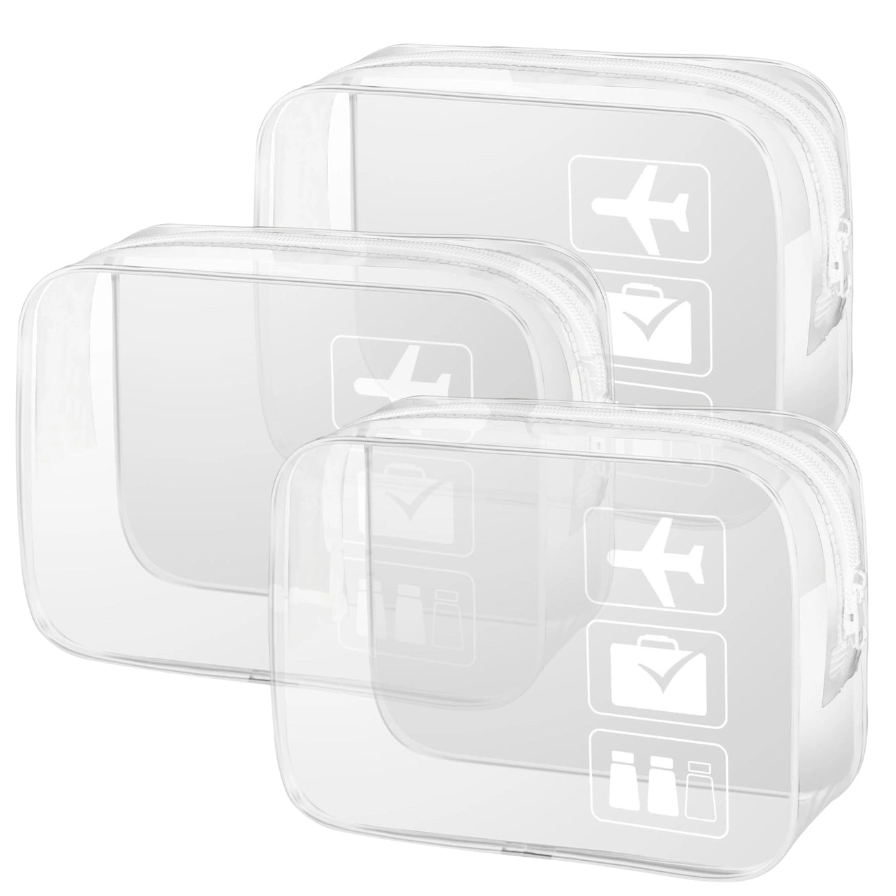 Rinkinys iš 3 skaidrių kosmetinių kelionėms – Balta spalva
