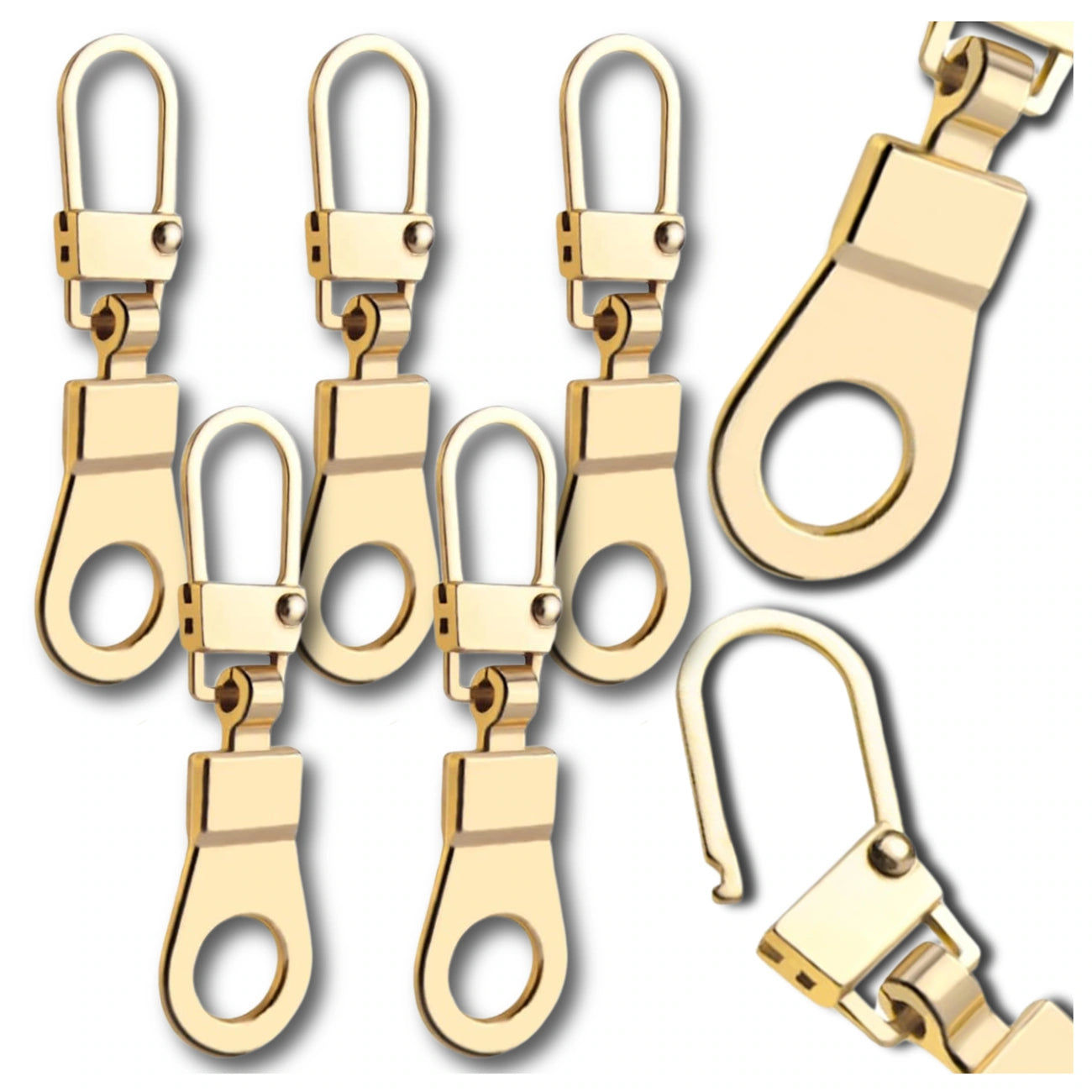 Auksinės metalinės pakabos užtrauktukams, 5 vnt.