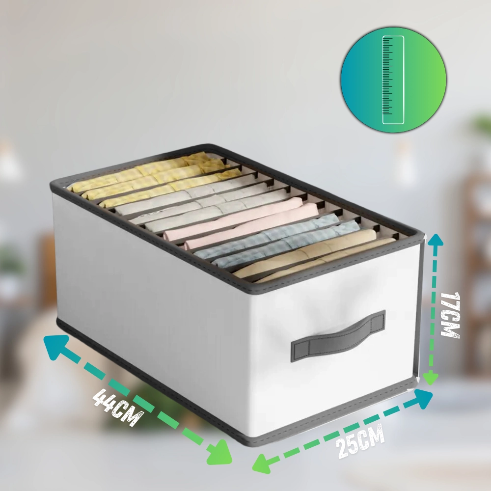 Šis patvarus ir funkcionalus organizatorius yra idealus sprendimas tvarkingam kelnių, megztinių ir rankšluosčių laikymui. Jis padeda palaikyti tvarką spintoje ar stalčiuose, apsaugodamas drabužius nuo dulkių ir nešvarumų.