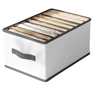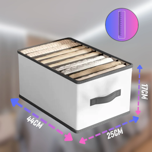 Šis funkcionalus ir patvarus organizatorius padės palaikyti tvarką jūsų spintoje ar stalčiuose, užtikrindamas lengvą prieigą prie daiktų. Idealiai tinka džinsams, megztiniams, rankšluosčiams ir kitiems tekstilės gaminiams laikyti.