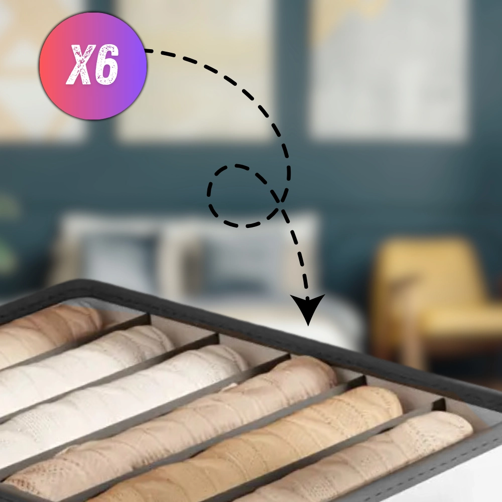 Šis kompaktiškas stalčių organizatorius su 6 skyriais yra puikus sprendimas tvarkai palaikyti spintoje ar stalčiuose. Jis užtikrina lengvą prieigą prie daiktų ir yra idealus džinsams, megztiniams, rankšluosčiams bei kitiems tekstilės gaminiams laikyti.