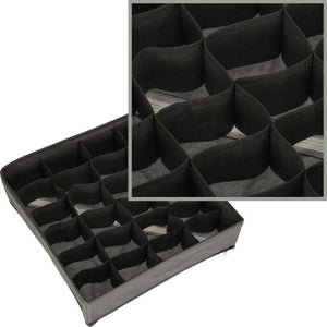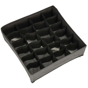 Šis 24 skyrelių stalčių organizatorius yra puikus sprendimas tvarkai palaikyti ir vietai sutaupyti jūsų spintoje. Jis idealiai tinka kojinėms, apatiniams drabužiams, kaklaraiščiams ir kitoms smulkioms tekstilės prekėms laikyti.