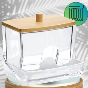 Ši skaidri dėžutė yra puikus sprendimas tvarkingai laikyti vatos pagaliukus ir kitus smulkius vonios reikmenis. Dėžutė pasižymi elegantišku dizainu ir praktiškumu.