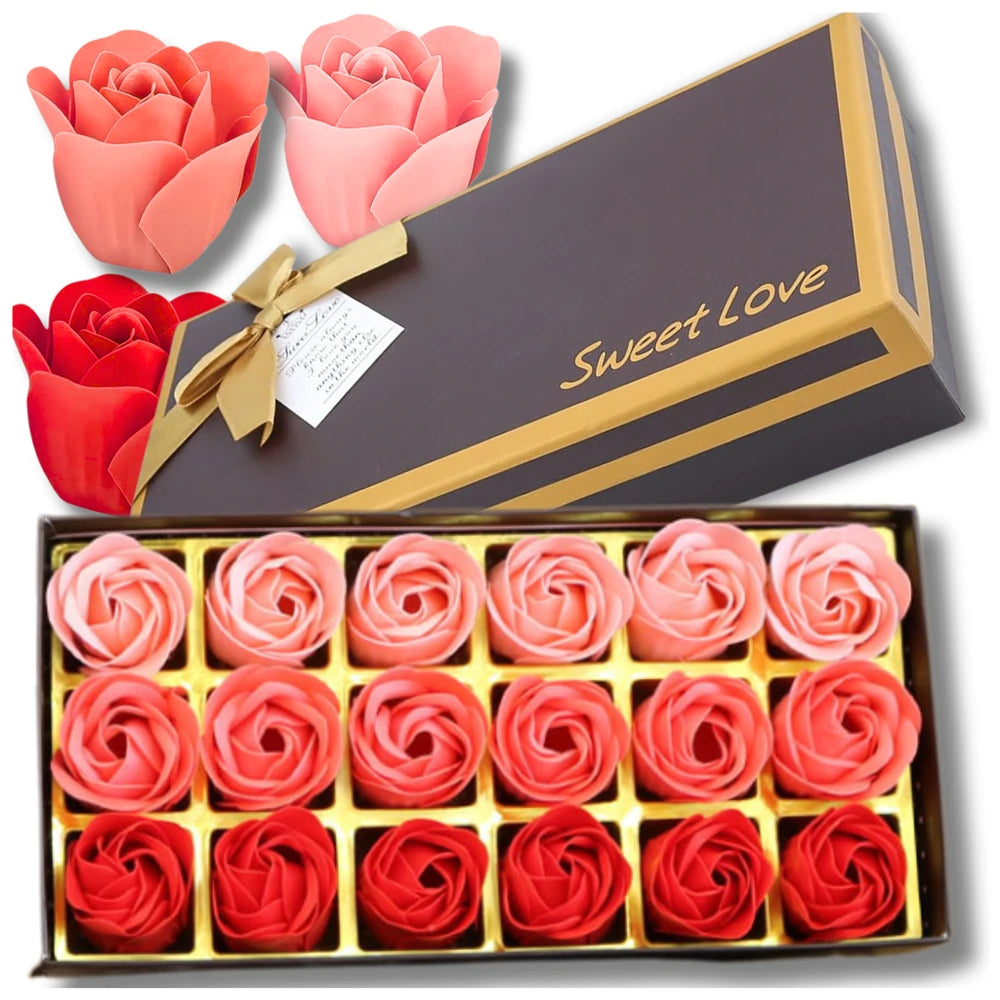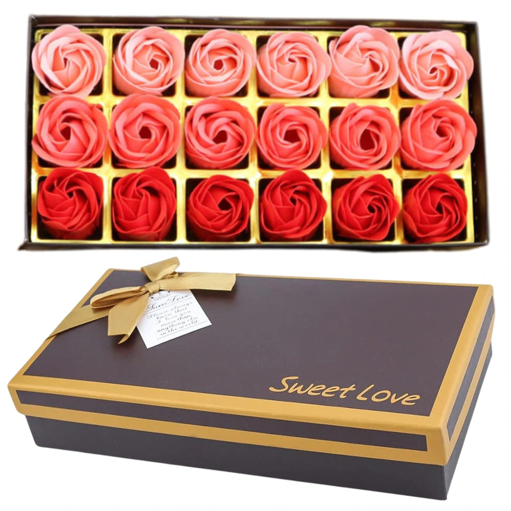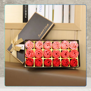 Dirbtinės rožės, 18 vnt., muilinės su kvapu, dovanų rinkinys