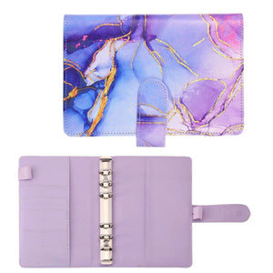 Spalva ir unikalios savybės: Elegantiškas violetinis dizainas su keturiais kortelių skyreliais, viena šonine kišene ir kilpele rašikliui, suteikia stiliaus ir funkcionalumo.