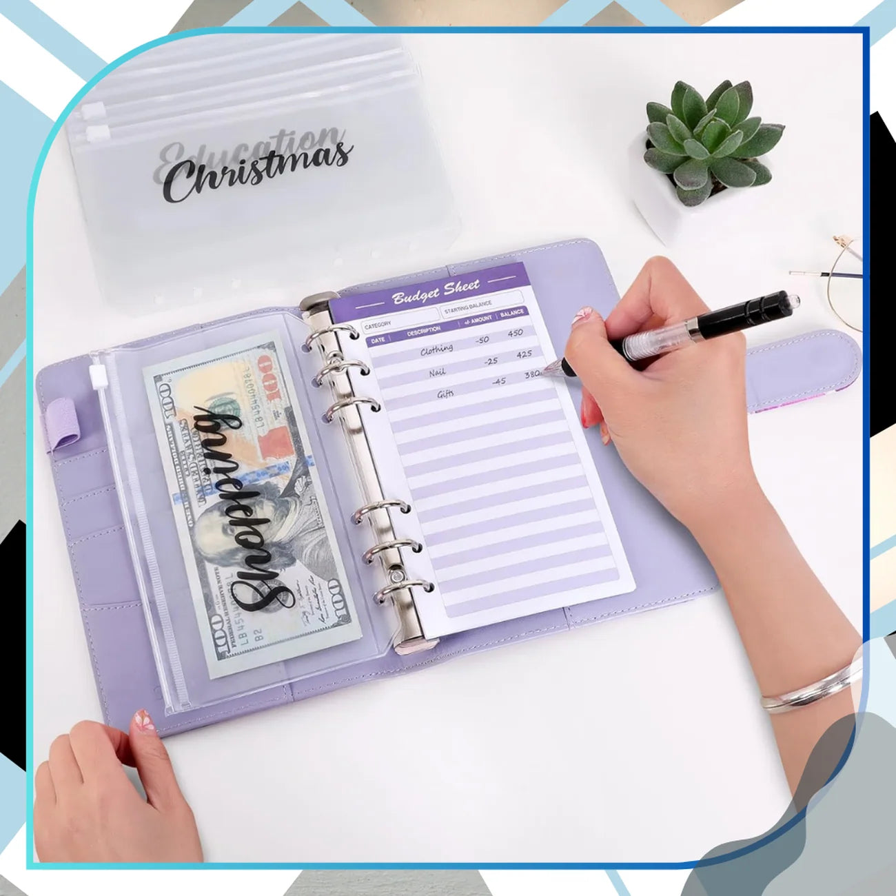 • Rinkinį sudaro 12 skaidrių vokų pinigams, 12 spalvotų biudžeto kortelių, 2 lipdukai su užrašais, spalvotų žymeklių lapas ir liniuotė.