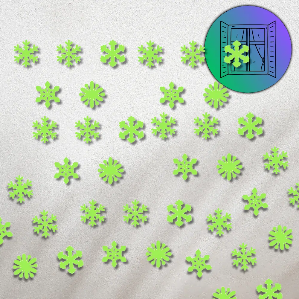 Šis rinkinys, sudarytas iš 50 fluorescencinių snaigių lipdukų, yra puikus pasirinkimas norint sukurti šventinę atmosferą jūsų namuose.