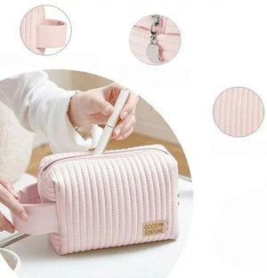 Ši elegantiška rožinės spalvos kosmetinė, pagaminta iš ekologiškos odos, yra puikus pasirinkimas tiek kasdieniam naudojimui, tiek kelionėms.