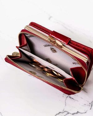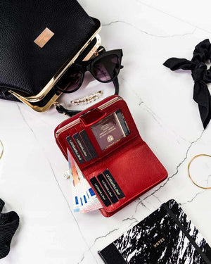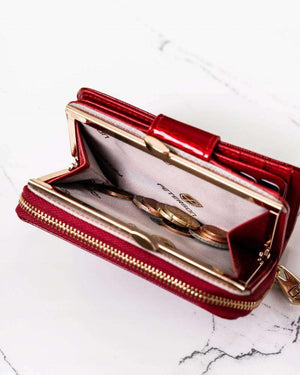 Ši elegantiška moteriška piniginė yra pagaminta iš aukštos kokybės natūralios odos, kuri užtikrina ilgaamžiškumą ir malonų pojūtį liečiant. Piniginė yra raudonos spalvos, kuri suteikia išskirtinumo ir stiliaus.