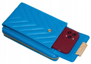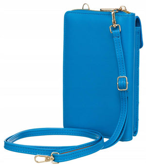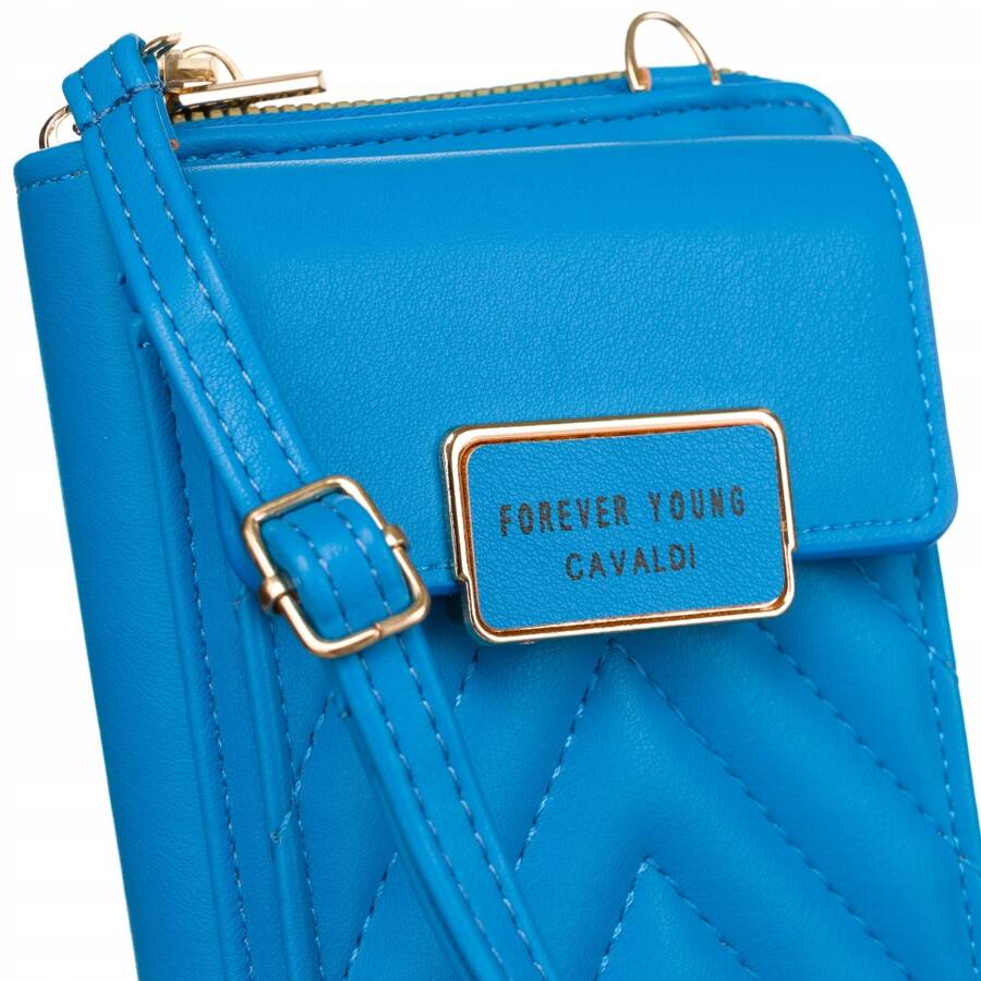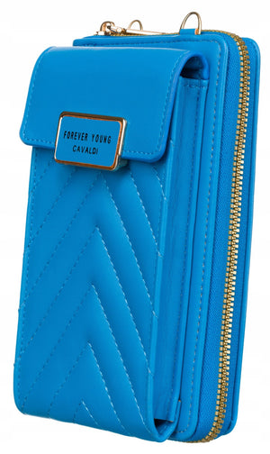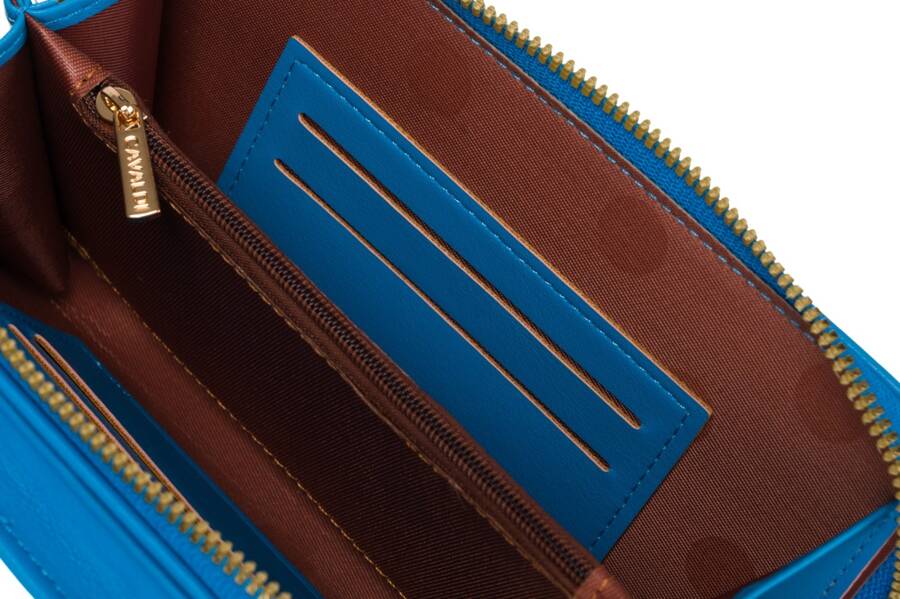 Didelis 4U CAVALDI moteriškas mėlynas portfelis iš ekologiškos odos su užtrauktuku.