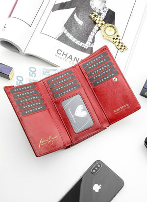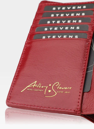 Moteriška odinė piniginė STEVENS raudonos spalvos