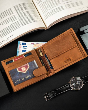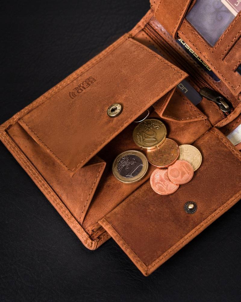 Ši elegantiška piniginė yra pagaminta iš aukštos kokybės natūralios zomšos ir nubuko odos, kuri suteikia jai išskirtinį pojūtį ir ilgaamžiškumą. Rudos spalvos dizainas puikiai dera prie įvairių stilių, o didelis dydis užtikrina, kad turėsite pakankamai vietos visiems savo svarbiausiems daiktams.