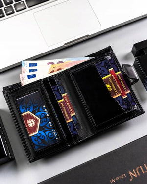 Ši elegantiška ir funkcionali piniginė yra puikus pasirinkimas vyrams, vertinantiems kokybę ir saugumą. Pagaminta iš natūralios odos, ji ne tik atrodo prabangiai, bet ir yra ilgaamžė. Juoda spalva suteikia universalumo, todėl piniginė puikiai tiks bet kokiai progai. Dėl didelio dydžio ir daugiau nei 10 kortelių skyrių, ji patenkins visus jūsų poreikius. Be to, integruota RFID apsauga užtikrina jūsų kortelių duomenų saugumą.