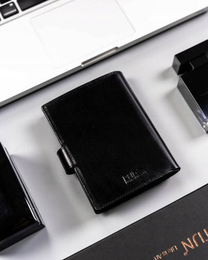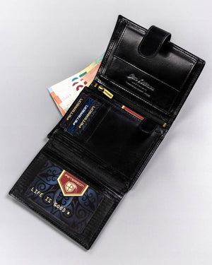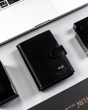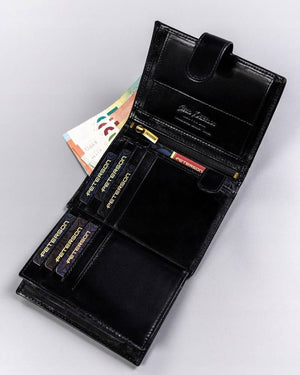 Ši elegantiška ir funkcionali piniginė yra puikus pasirinkimas vyrams, vertinantiems kokybę ir saugumą. Pagaminta iš natūralios odos, ji ne tik atrodo stilingai, bet ir užtikrina ilgaamžiškumą. Juoda spalva suteikia klasikinį ir universalų įvaizdį, tinkantį bet kokiai progai.