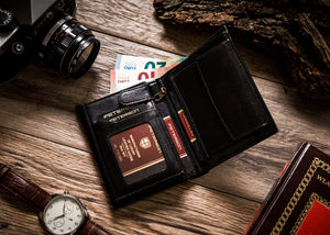 Ši elegantiška ir praktiška piniginė yra puikus pasirinkimas vyrams, vertinantiems kokybę ir saugumą. Pagaminta iš natūralios odos, ji ne tik atrodo stilingai, bet ir užtikrina ilgaamžiškumą. Juoda spalva suteikia universalumo, todėl piniginė puikiai tiks bet kokiai progai. Dėl integruotos RFID apsaugos jūsų kortelės bus saugios nuo nepageidaujamo nuskaitymo.