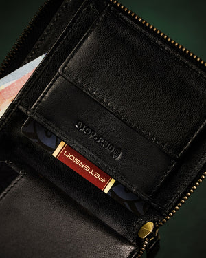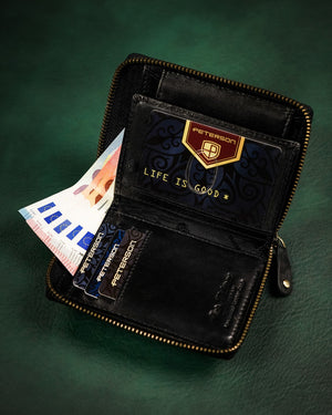 Ši piniginė ne tik apsaugo jūsų korteles nuo nepageidaujamo nuskaitymo dėl integruotos RFID apsaugos, bet ir suteikia pakankamai vietos visiems jūsų svarbiausiems daiktams. Jos klasikinė juoda spalva puikiai dera prie bet kokio stiliaus.