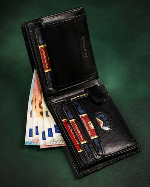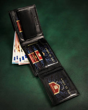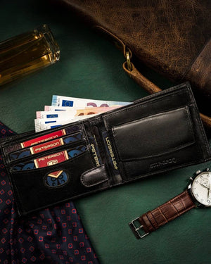 Ši elegantiška ir praktiška piniginė yra puikus pasirinkimas vyrams, vertinantiems kokybę ir saugumą. Pagaminta iš natūralios odos, ji ne tik atrodo stilingai, bet ir užtikrina ilgaamžiškumą. Juoda spalva suteikia universalumo, todėl piniginė puikiai tiks bet kokiai progai. Dėl integruotos RFID apsaugos jūsų kortelės bus apsaugotos nuo nepageidaujamo nuskaitymo.