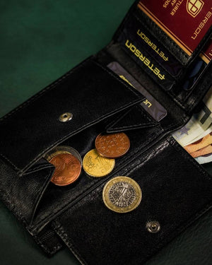 Ši elegantiška ir funkcionali piniginė yra puikus pasirinkimas vyrams, vertinantiems kokybę ir saugumą. Pagaminta iš natūralios odos, ji užtikrina ilgaamžiškumą ir stilingą išvaizdą. Juoda spalva suteikia universalumo, todėl piniginė puikiai tiks prie bet kokio stiliaus. Vidutinio dydžio piniginė turi 6-10 kortelių skyrius, leidžiančius patogiai laikyti visas reikalingas korteles. Be to, RFID apsauga padės apsaugoti jūsų asmeninius duomenis nuo neteisėto nuskaitymo.