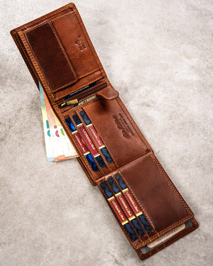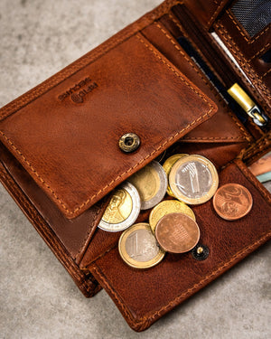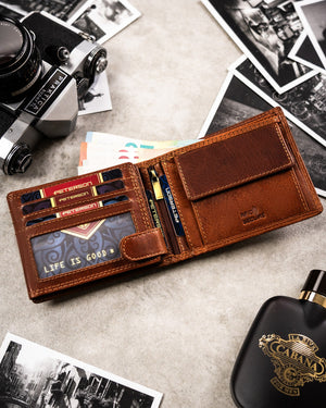 Ši elegantiška ir funkcionali piniginė yra puikus pasirinkimas vyrams, vertinantiems kokybę ir stilių. Pagaminta iš natūralios odos, ji užtikrina ilgaamžiškumą ir patikimumą. Šviesiai ruda spalva suteikia klasikinį ir universalų įvaizdį, tinkantį įvairioms progoms.