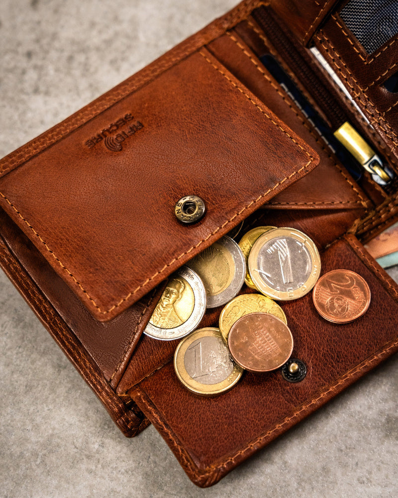 Piniginė turi RFID apsaugą, kuri padeda apsaugoti jūsų korteles nuo nepageidaujamo nuskaitymo. Su 6-10 kortelių skyriais, ji suteikia pakankamai vietos visoms jūsų kortelėms. Kompaktiški išmatavimai (9,5 cm x 12 cm x 2,5 cm) leidžia patogiai nešiotis piniginę kišenėje ar krepšyje.