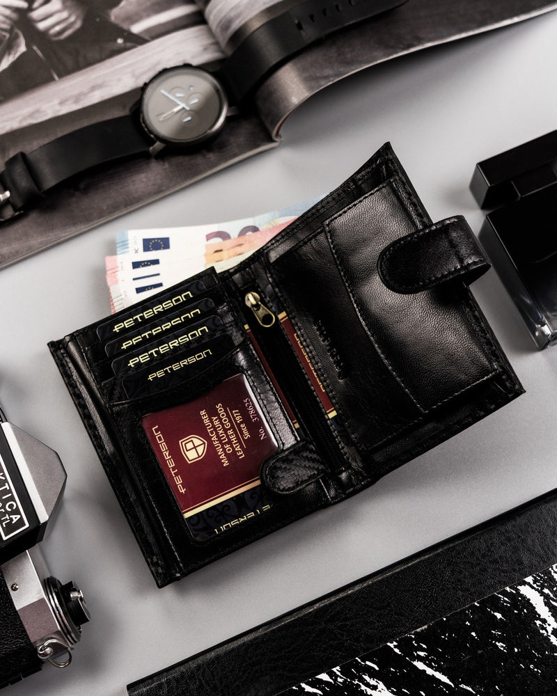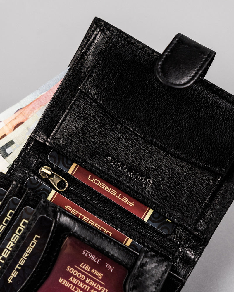 Ši elegantiška piniginė iš Peterson prekės ženklo yra puikus pasirinkimas vyrams, vertinantiems kokybę ir stilių. Pagaminta iš aukštos kokybės natūralios odos, ji užtikrina ilgaamžiškumą ir patikimumą.