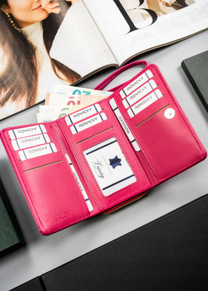 Ši piniginė yra praktiška ir talpi, turinti daugiau nei 10 kortelių skyrių bei atskirą skyrelį monetoms. Jos vidutinis dydis leidžia patogiai nešiotis kasdien, o stilingas dizainas puikiai dera prie įvairių aprangos stilių.
