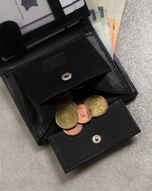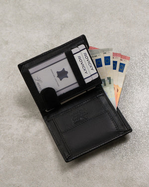 Ši elegantiška ir kompaktiška piniginė yra puikus pasirinkimas tiems, kurie vertina kokybę ir funkcionalumą. Pagaminta iš natūralios odos, ji užtikrina ilgaamžiškumą ir stilingą išvaizdą. Juoda spalva suteikia universalumo, todėl piniginė puikiai tiks prie bet kokio stiliaus. Be to, RFID apsauga padės apsaugoti jūsų korteles nuo nepageidaujamo nuskaitymo.