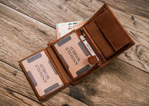 Ši elegantiška ir funkcionali piniginė yra puikus pasirinkimas vyrams, vertinantiems kokybę ir stilių. Pagaminta iš natūralios zomšos ir nubuko odos, ji užtikrina ilgaamžiškumą ir patogumą. Šviesiai ruda spalva suteikia klasikinį ir universalų įvaizdį, tinkantį įvairioms progoms. Didelis dydis leidžia patogiai laikyti visus būtinus daiktus, o RFID apsauga užtikrina jūsų kortelių saugumą. Su 6-10 kortelių skyriais, ši piniginė yra praktiškas ir stilingas pasirinkimas kasdieniam naudojimui.