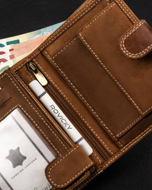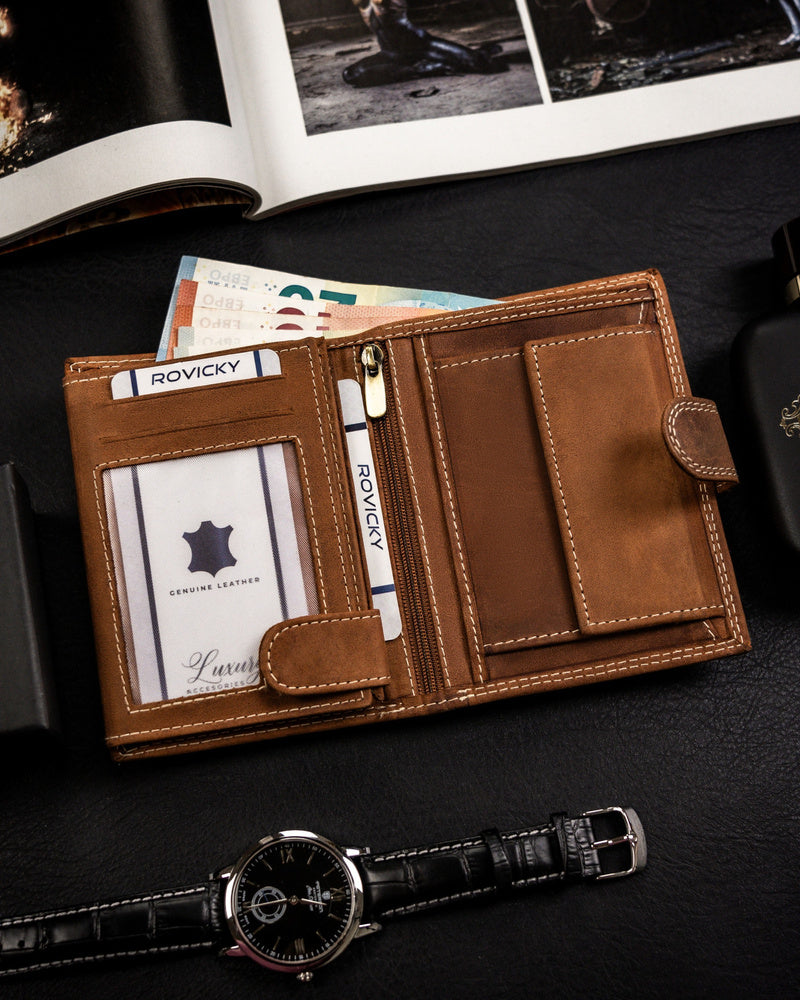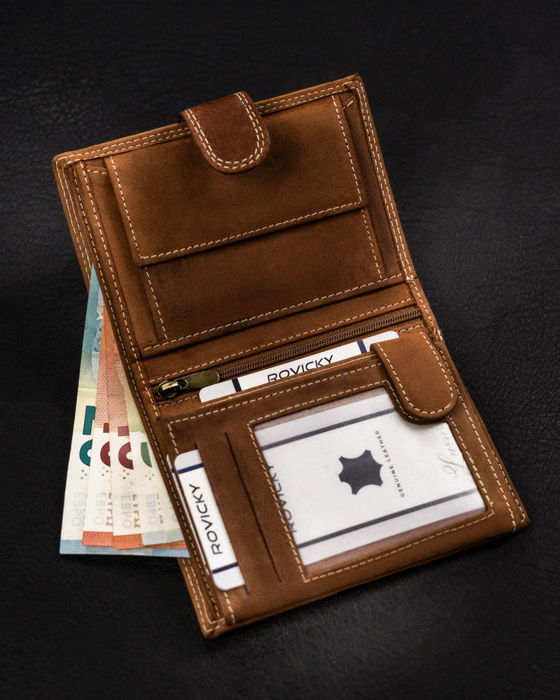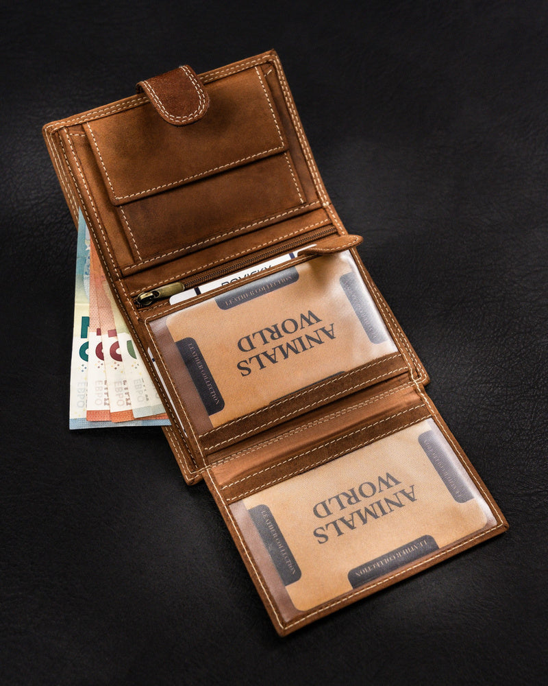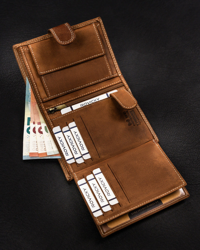 Ši elegantiška ir funkcionali piniginė yra puikus pasirinkimas vyrams, vertinantiems kokybę ir stilių. Pagaminta iš natūralios zomšos ir nubuko odos, ji užtikrina ilgaamžiškumą ir patogumą. Šviesiai ruda spalva suteikia klasikinį ir universalų įvaizdį, tinkantį įvairioms progoms. Piniginė turi RFID apsaugą, kuri padeda apsaugoti jūsų korteles nuo nepageidaujamo nuskaitymo. Su 6-10 kortelių skyriais, ji suteikia pakankamai vietos visiems jūsų svarbiausiems dokumentams. Dydis 13 cm x 9,5 cm x 2,5 cm leidžia patogiai laikyti piniginę kišenėje ar krepšyje.